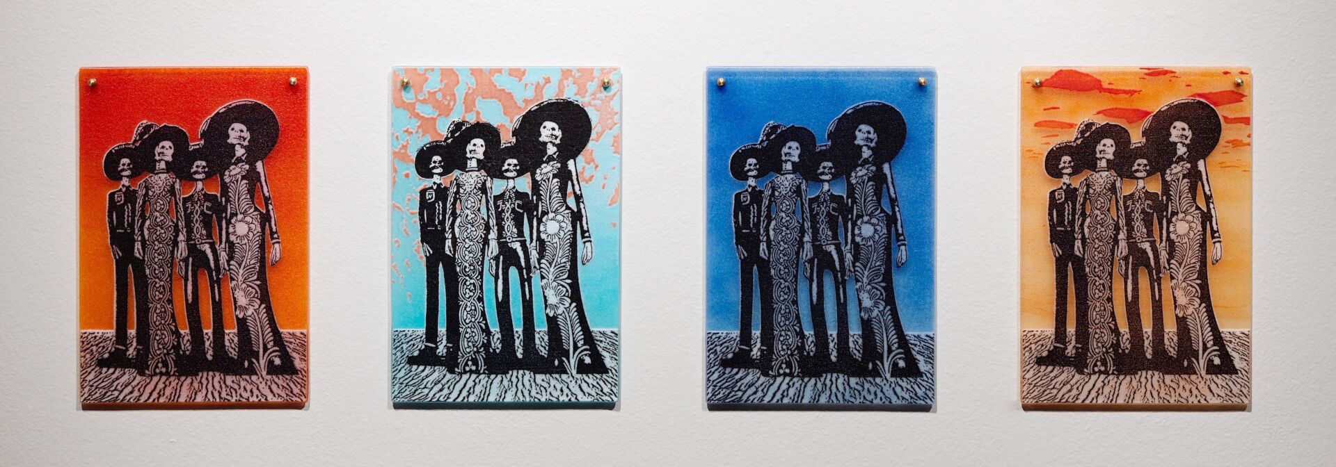 'Fiesta' - Mexico where my Heart is. Sunset Sky. Kiln-formed, textural printed glass. These textural prints look like velvet. This is a single piece of glass which measures 217mm W x 317mm H x 4mm thick. Wall fittings included.