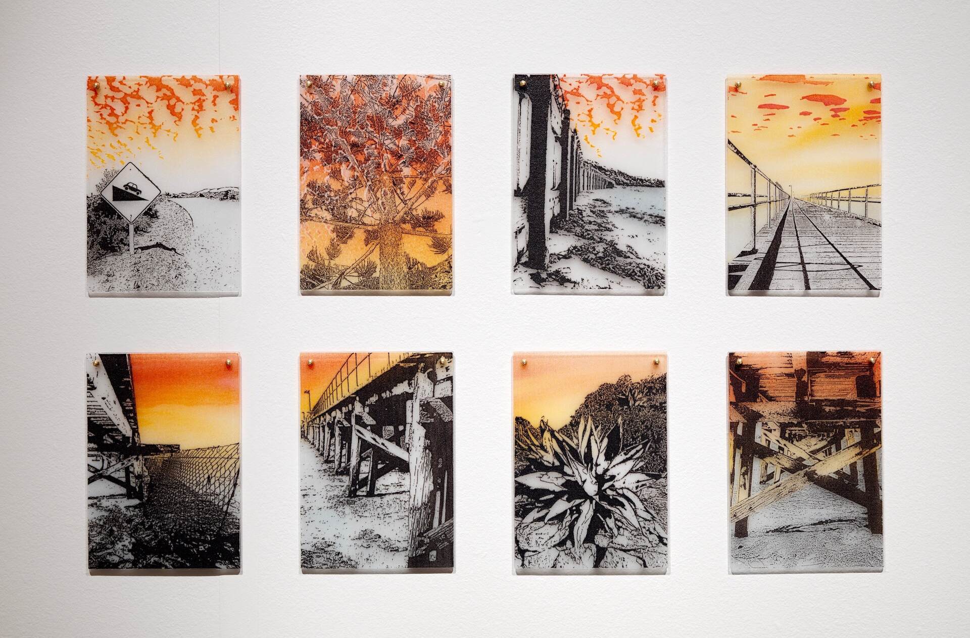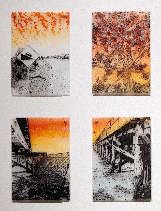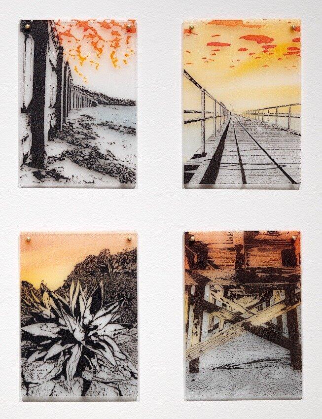 'Jetty Red'; kiln-formed textural glass print. 8 pieces of glass each