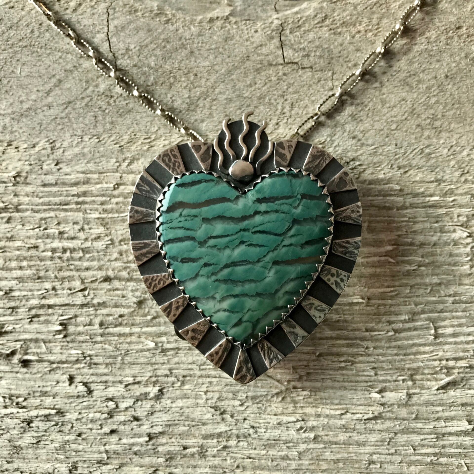 Milagro Heart & Hampton Butte Petrified Wood sterling silver pendant. Includes Sterling silver chain or leather necklet to your requirements.