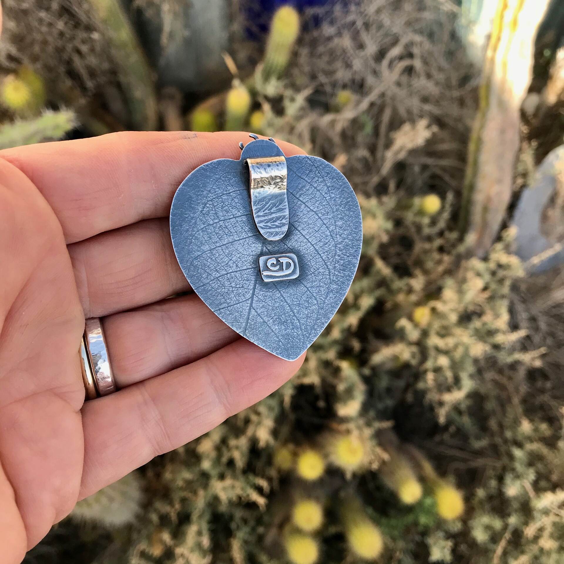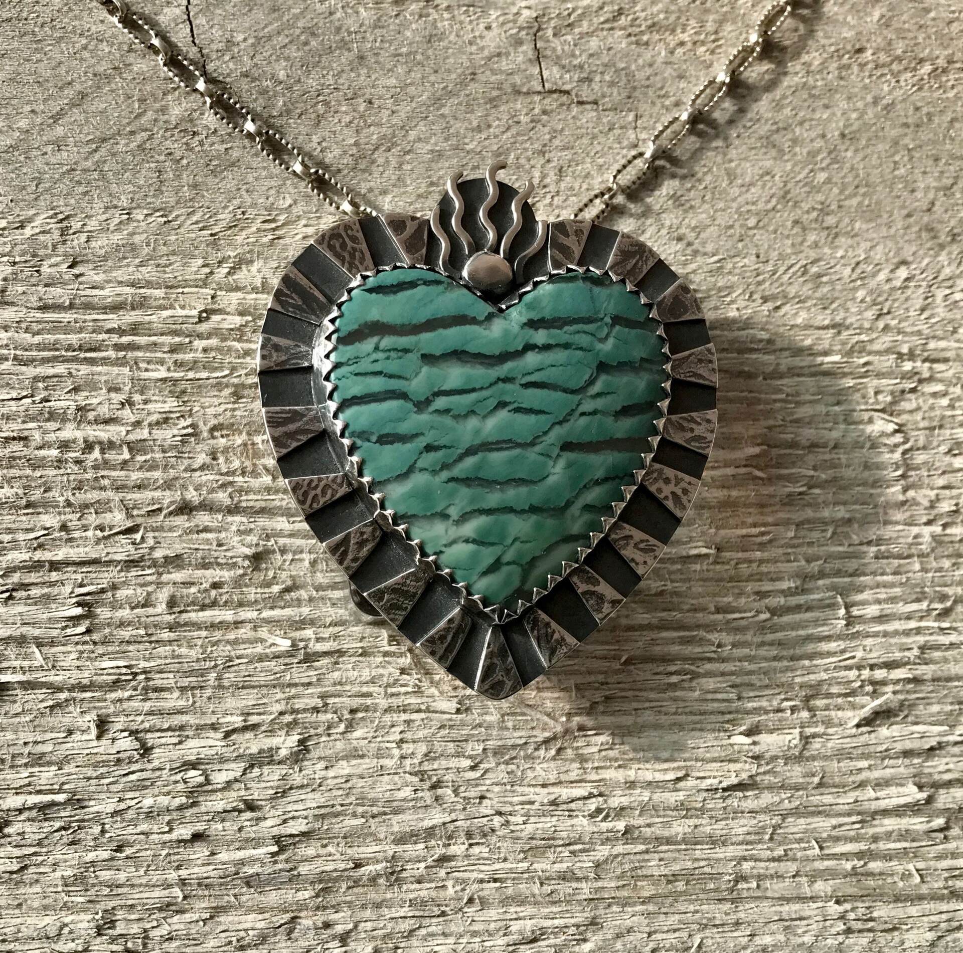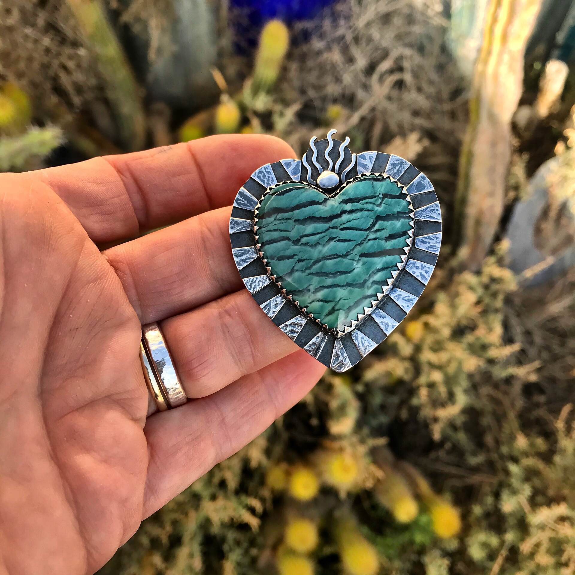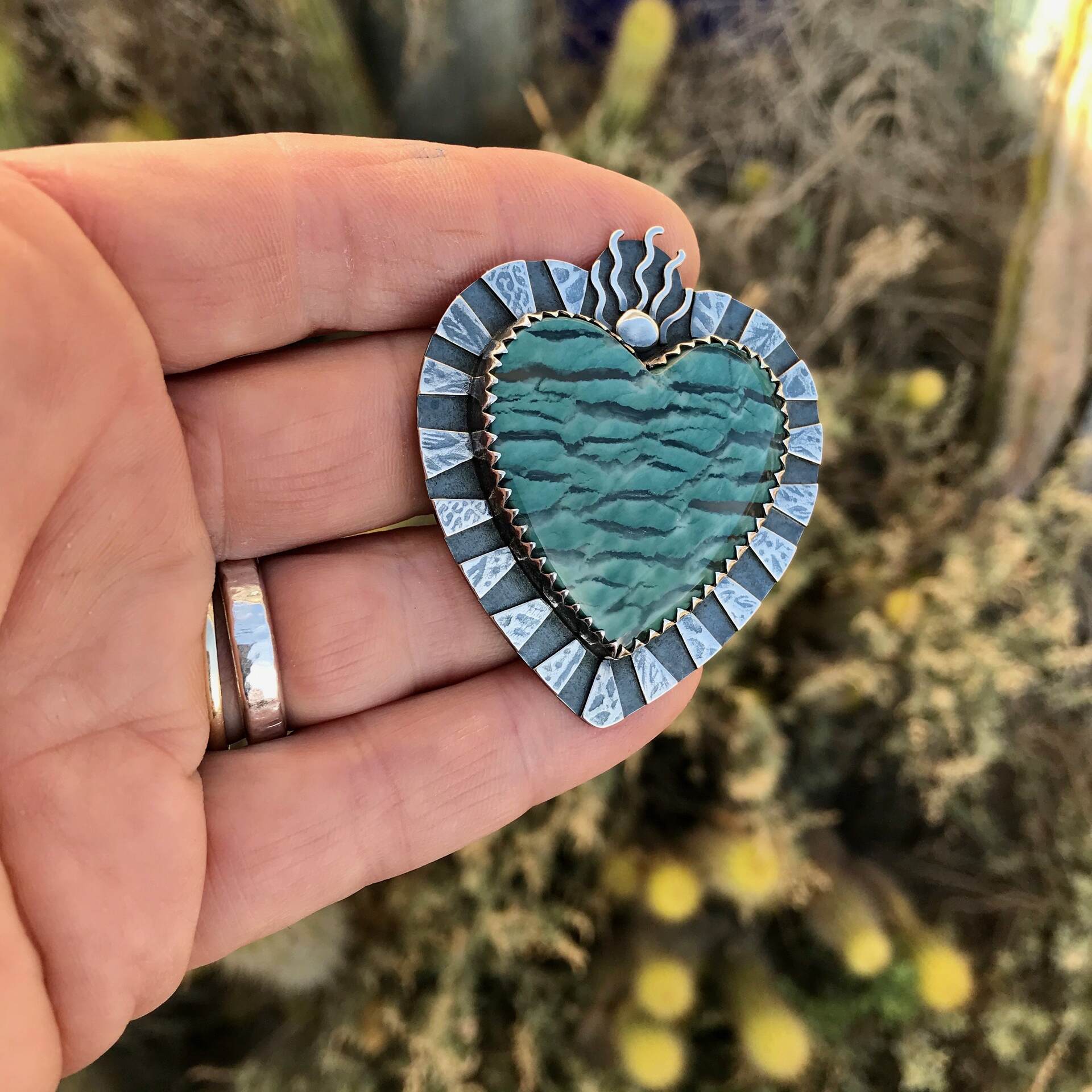Milagro Heart & Hampton Butte Petrified Wood sterling silver pendant. Includes Sterling silver chain or leather necklet to your requirements.