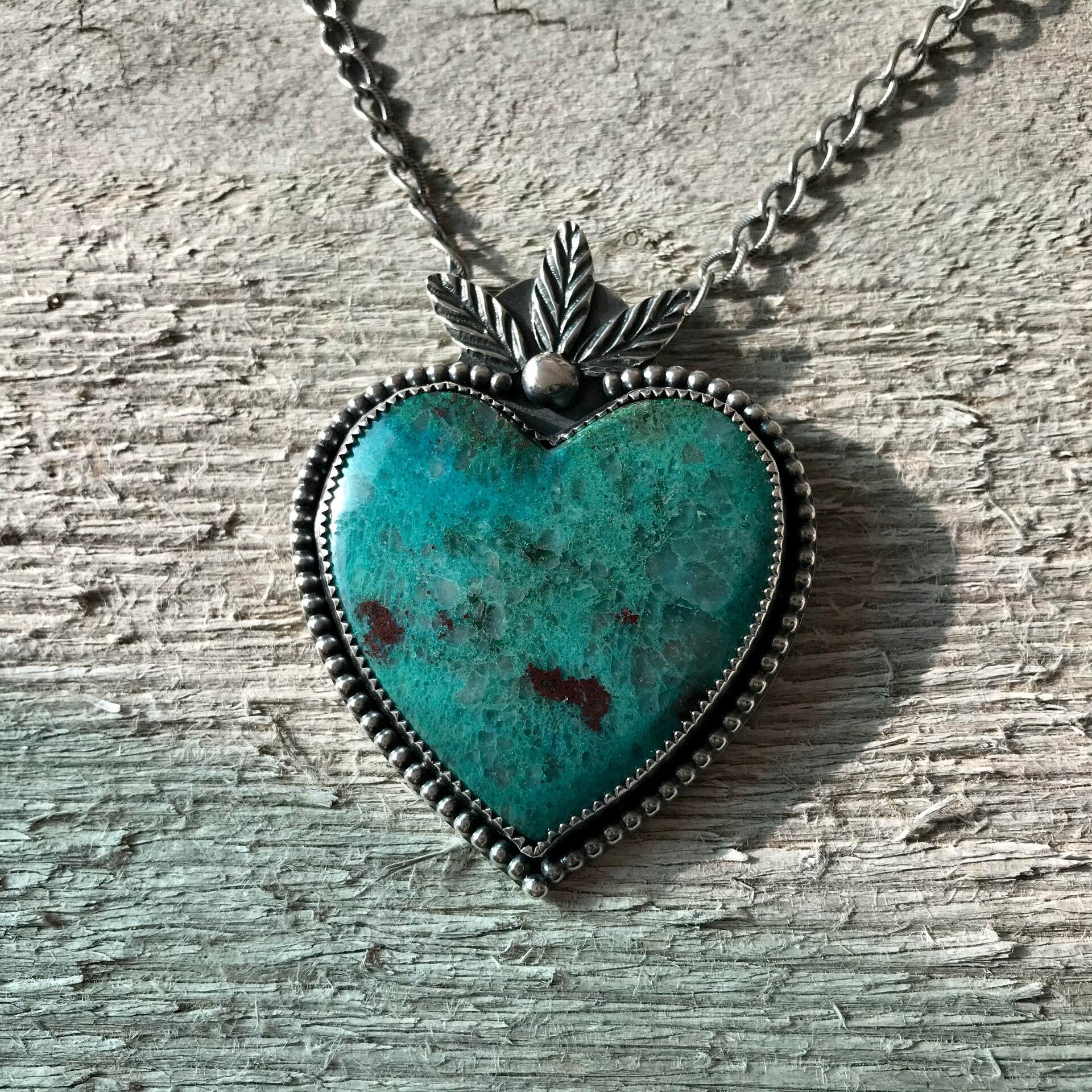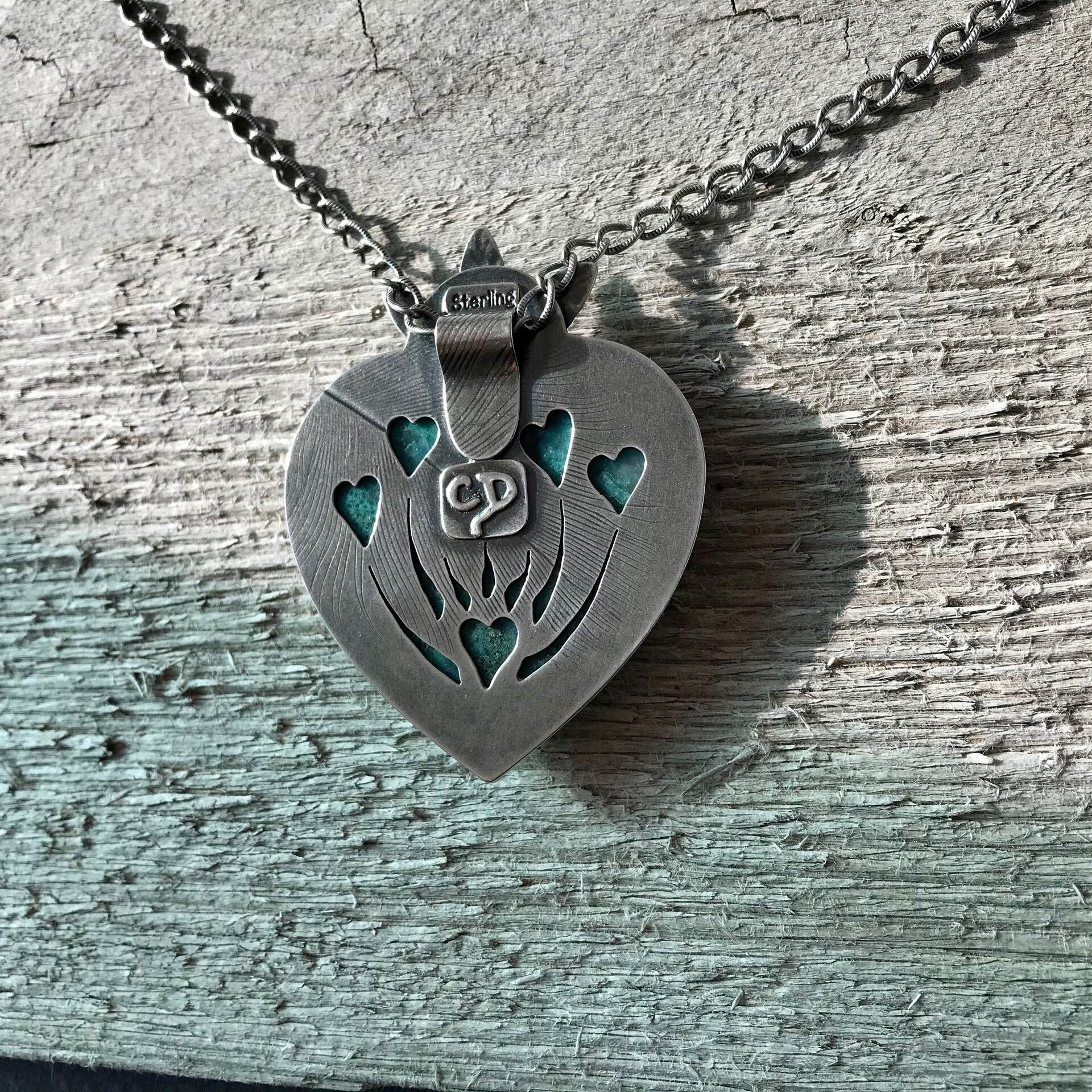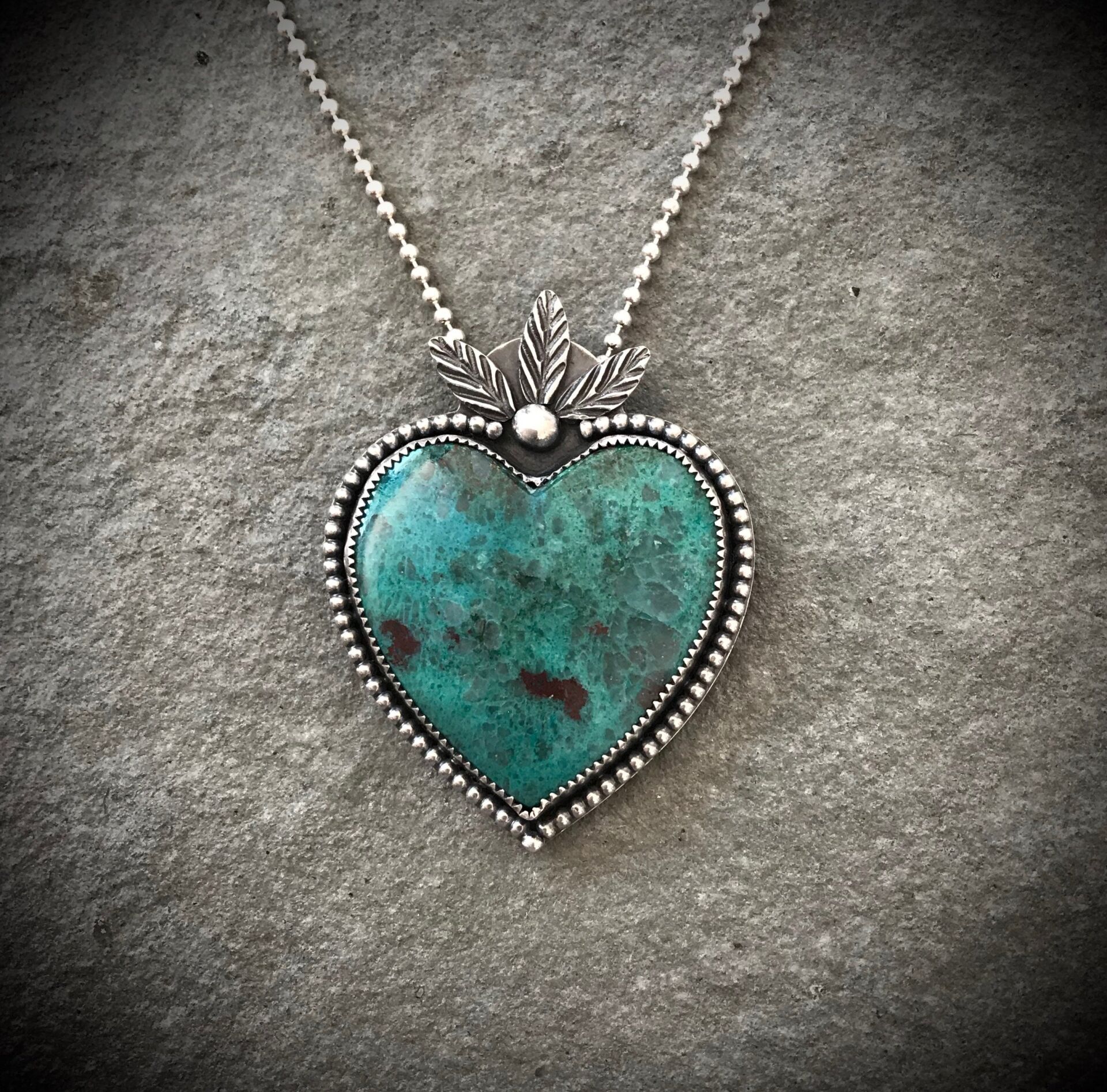 Milagro Heart 2 - Sonoran Chrysocolla & sterling silver pendant.