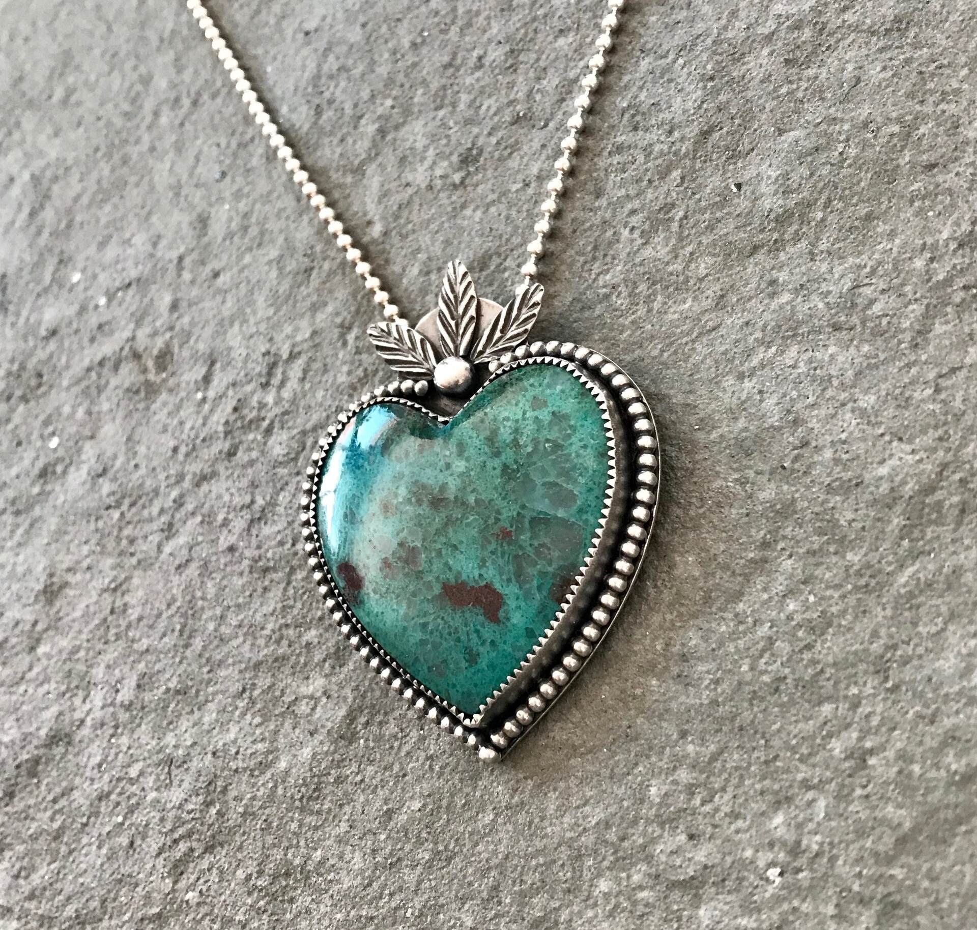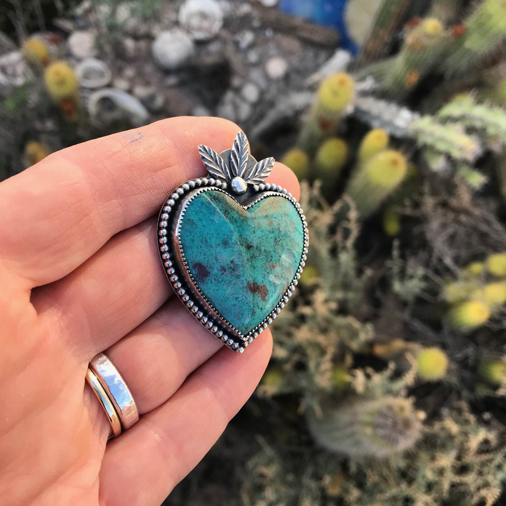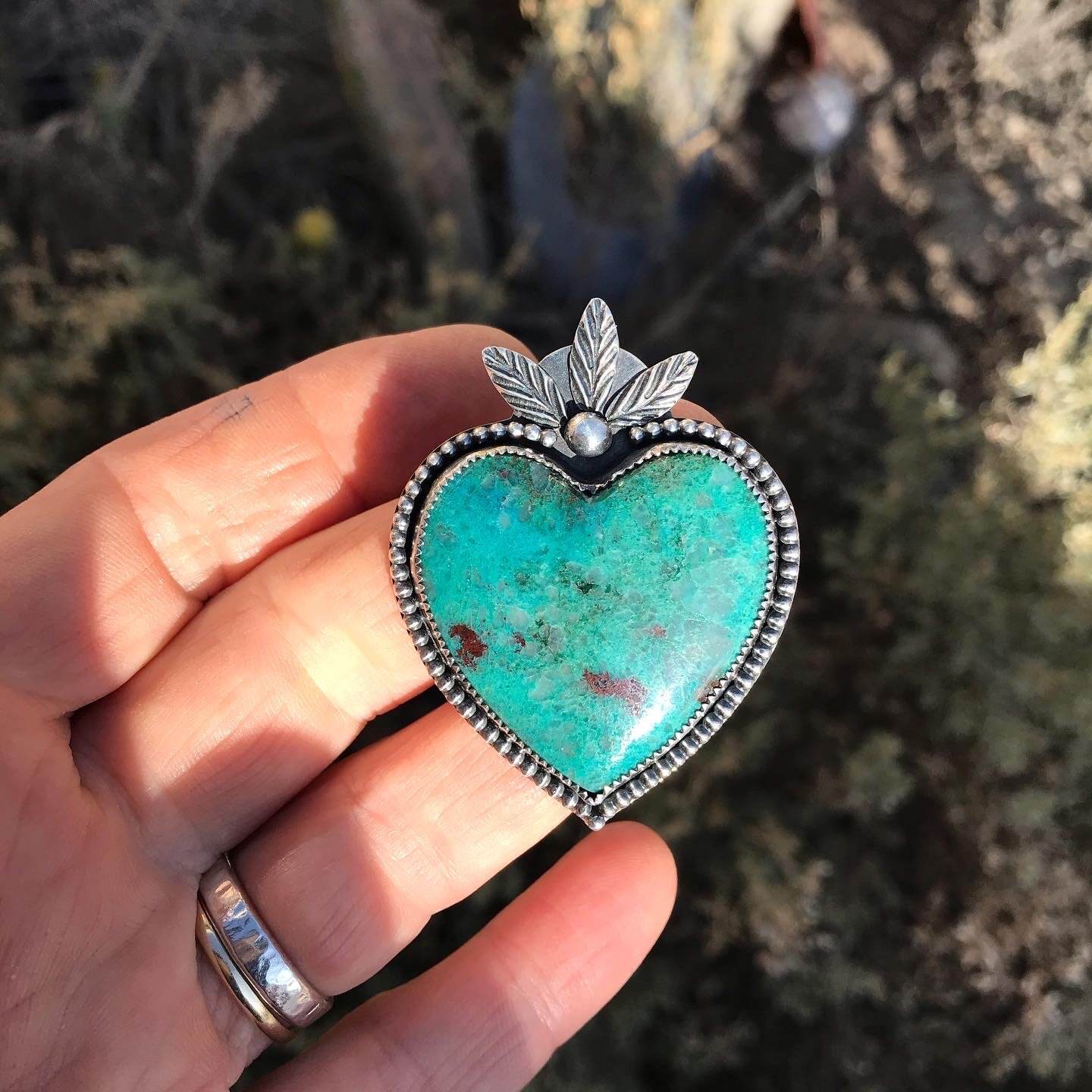 Milagro Heart 2 - Sonoran Chrysocolla & sterling silver pendant.