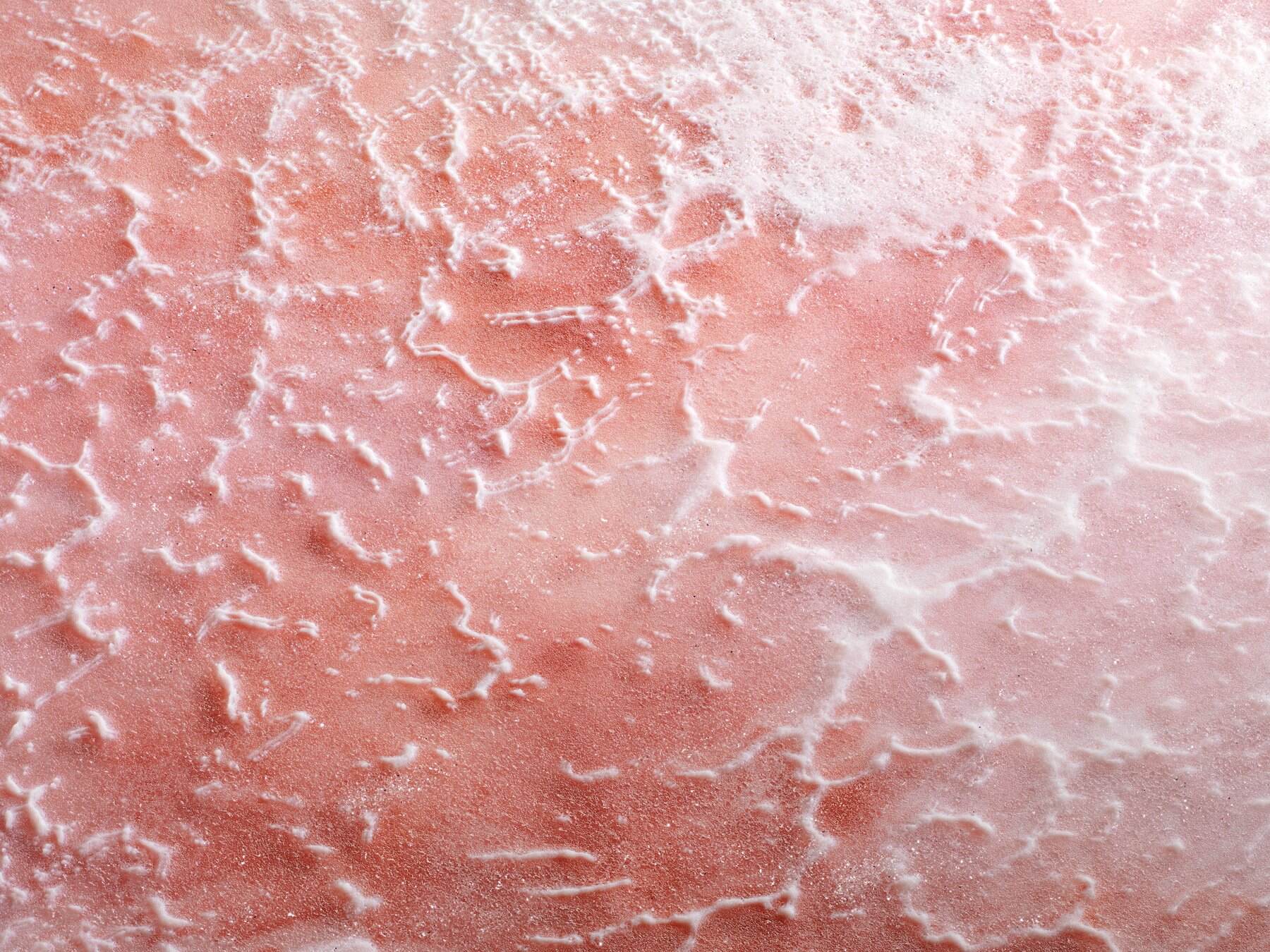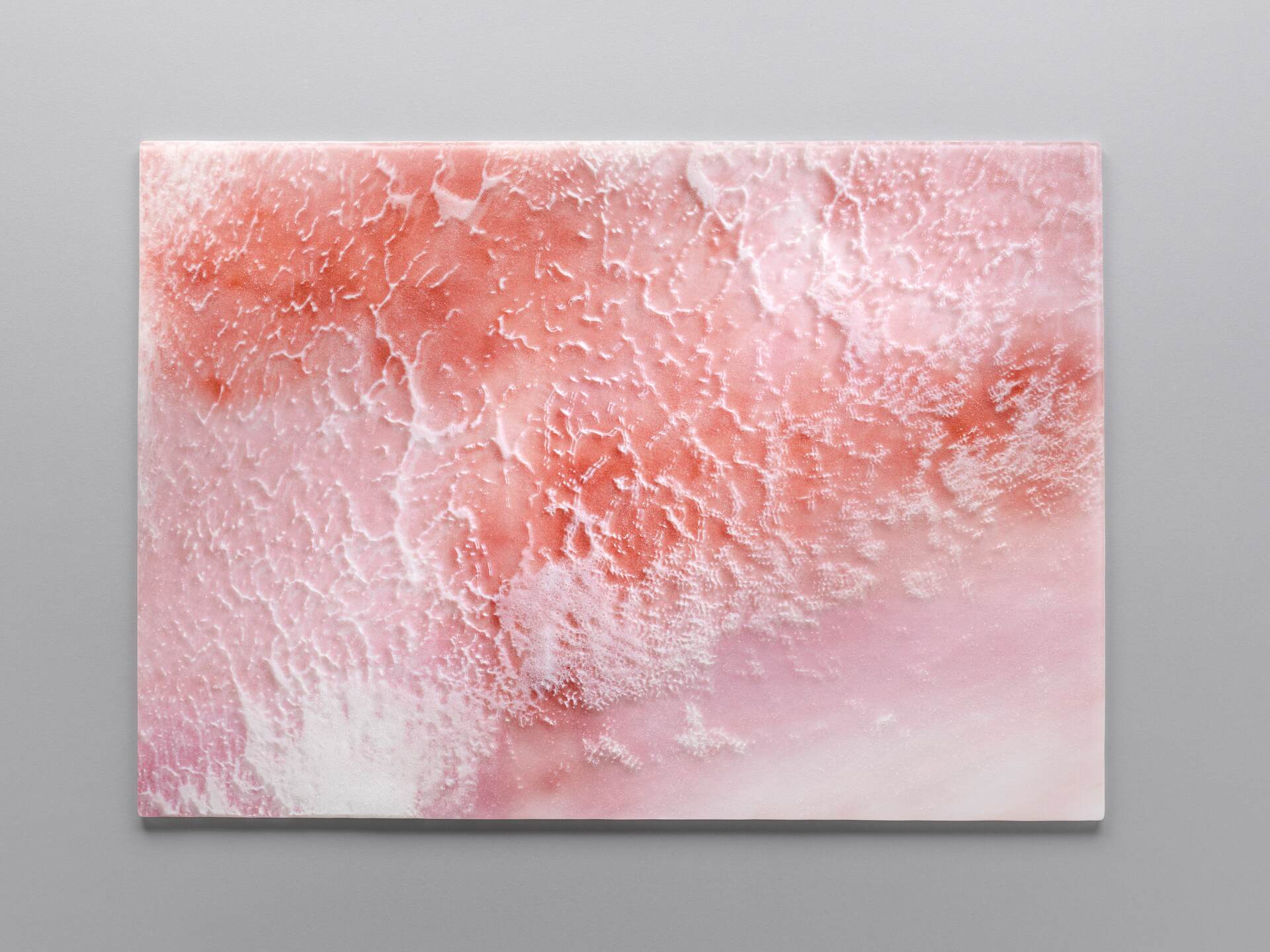 'Salt 1'; Kiln-formed textural print on glass. 1 piece of glass each measuring; 505mm x 710 mm x 8-9mm thick. This is a recent piece from my exhibition Layers. A series of three pieces of very textural glass inspired by the pink salt lake near my home. It can be hung either horizontally of vertically. Wall fittings to hang the glass are included.