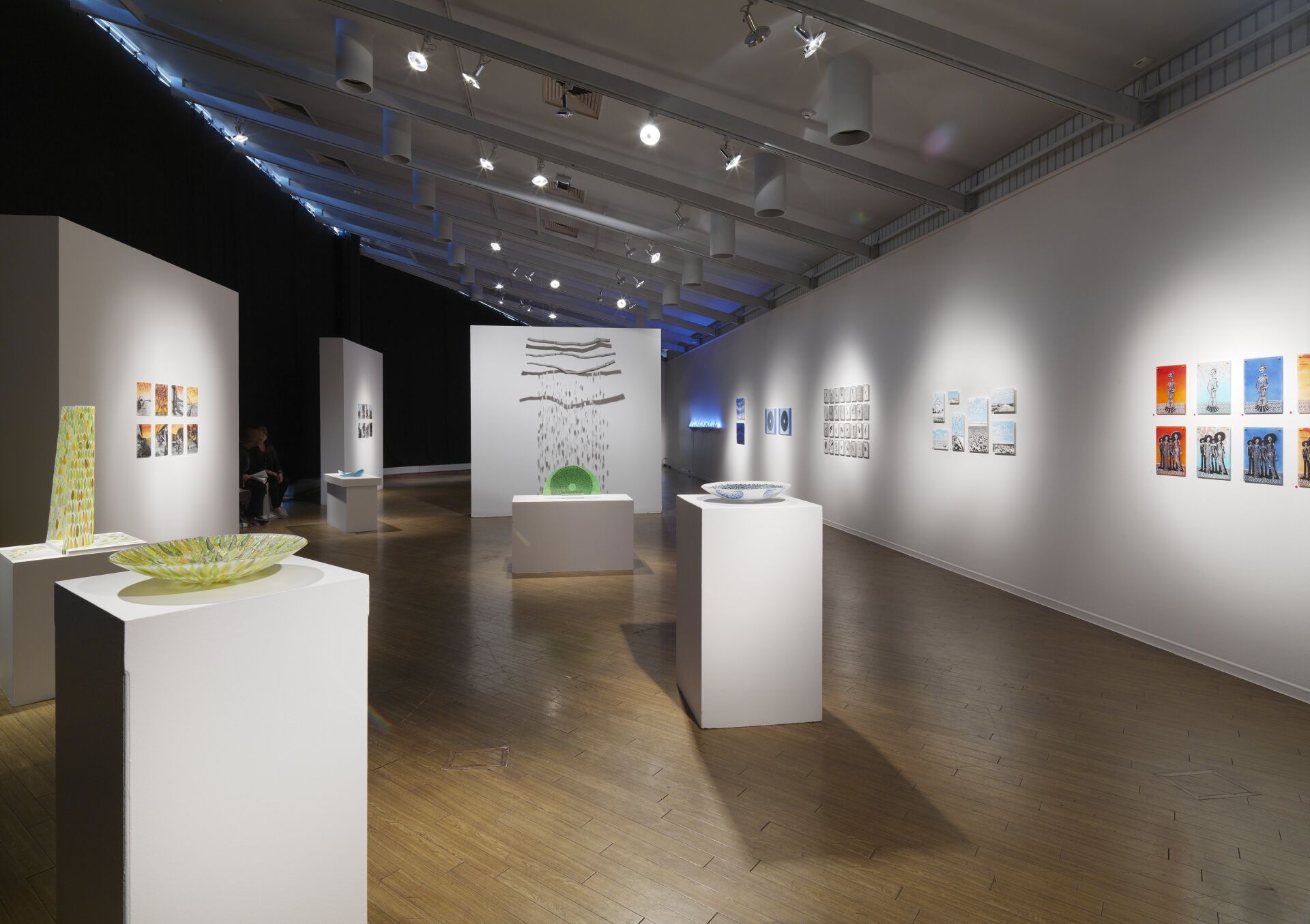 Urchin Lace vessel. This vessel shape is inspired by the bark vessels of indigenous people world wide. It is much more beautiful in person. Kiln-formed textural printed glass. Glass measures 597mm W x 305mm H x7mm approx. Upright Acrylic stand included 50mm high.